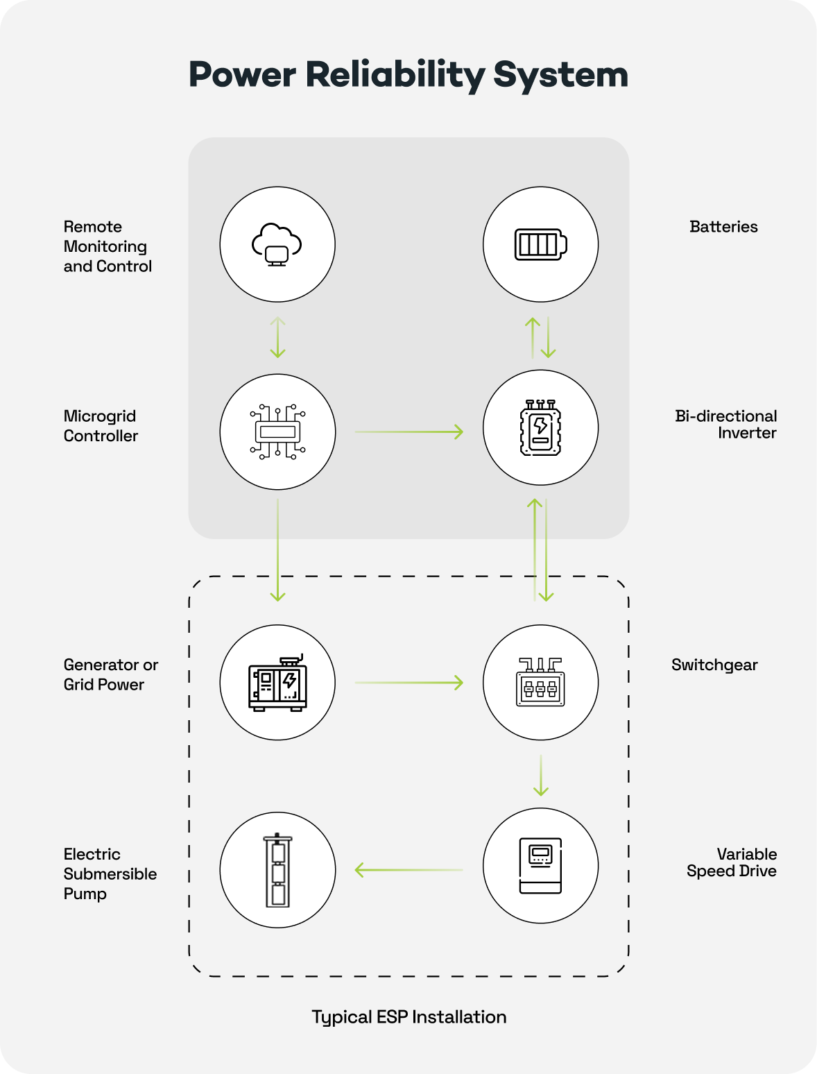 Our Power Reliability System seamlessly integrates multiple power sources at the wellsite or field level.